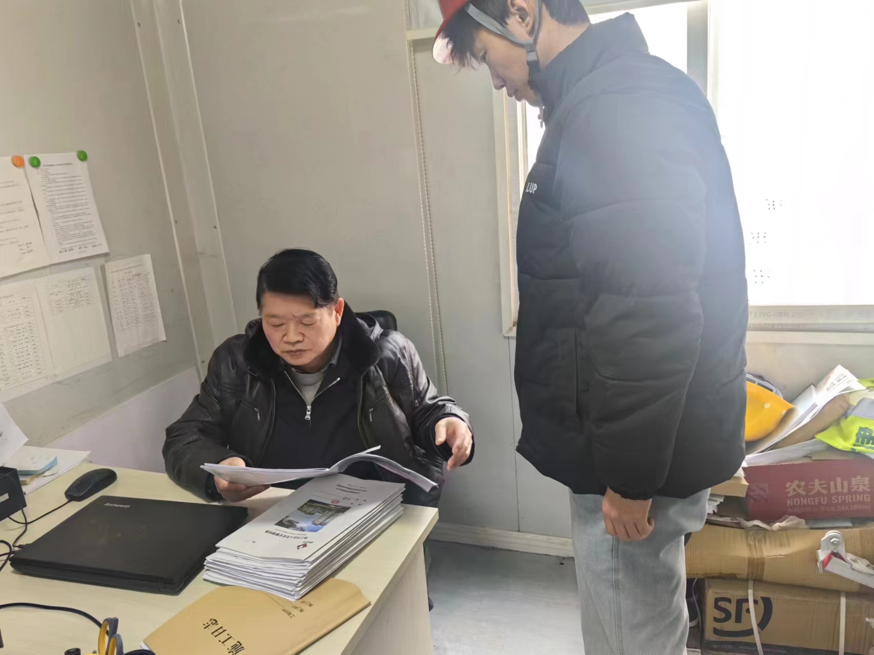 公司劉總、張部長對沙河項目現(xiàn)場所需的材料規(guī)劃進(jìn)行核實并作出調(diào)整
